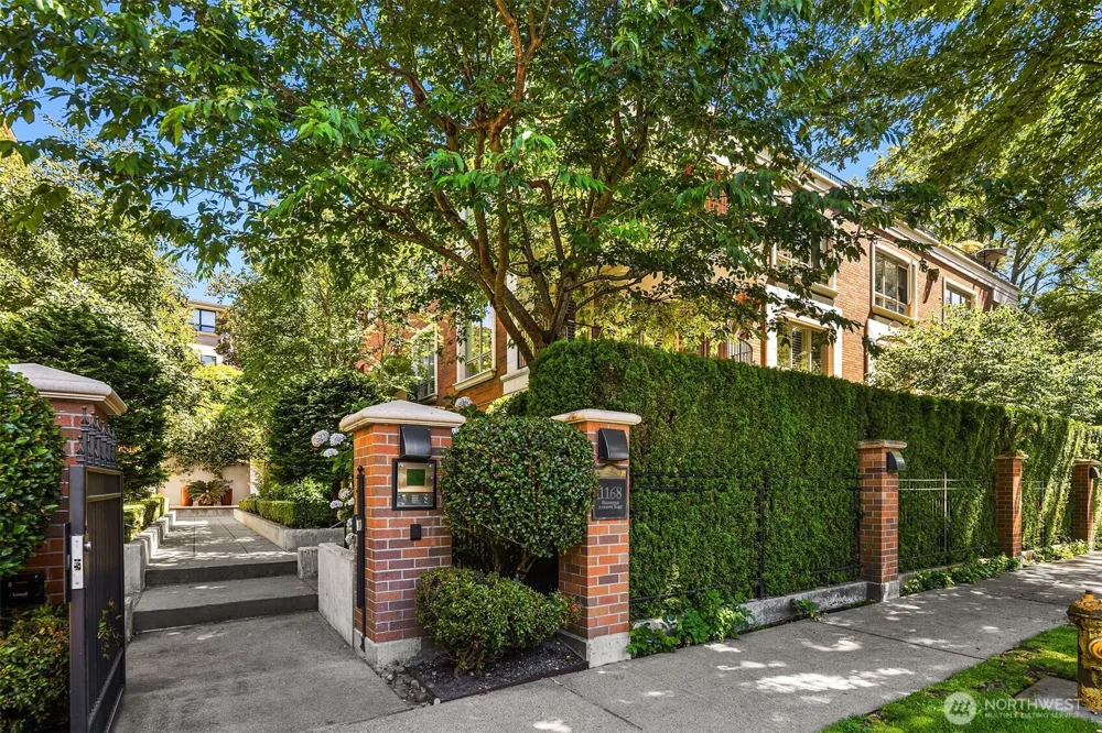 True penthouse at Harvard & Highland! Set on a quiet tree-lined street, among historic mansions in Harvard Belmont. Open layout flows with ease. A sleek marble fireplace anchors the living/dining area adjacent to the chef’s kitchen w/ gorgeous island & quality appliances. Office tucked in charming alcove.French doors lead to wraparound terrace, perfect for alfresco dining & outdoor living.The primary suite features glimpses of the Olympic Mountains, terrace access, walk-in closet & deep soaking tub.2nd ensuite bedroom offers peaceful garden outlook. Additional highlights:chic powder bath, laundry & 3 parking spaces.Enjoy privacy of gated community w/ tranquil courtyards & gym. Offering an elevated lifestyle in the dynamic Capitol Hill area.