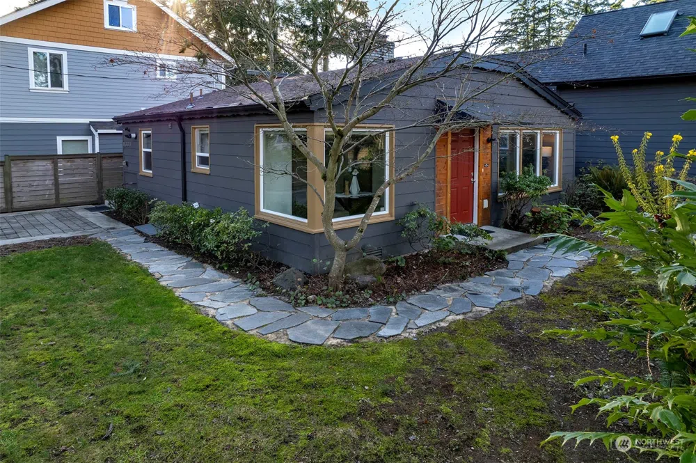 Charming 1 story rambler in a spectacular location. Small but easy to maintain yard, patio/driveway. Remodeled in 2015 by previous owner, nice finishes, bedroom is very spacious w/2 walk in closets, large mud room w/tankless hot water tank, stackable washer & dryer. Large living room w/wood burning fireplace & the original vintage stone. Large windows bringing in lots of light. Sided with hardiplank, double pane windows. Established plantings make this cottage charming and hidden from the road. Fabulous location on a bus line, 1 block to Greenwood. Walk to Pagliacci Pizza, Diva Espresso, Saltaro's & so much more. 5 blocks to Town & Country Grocery