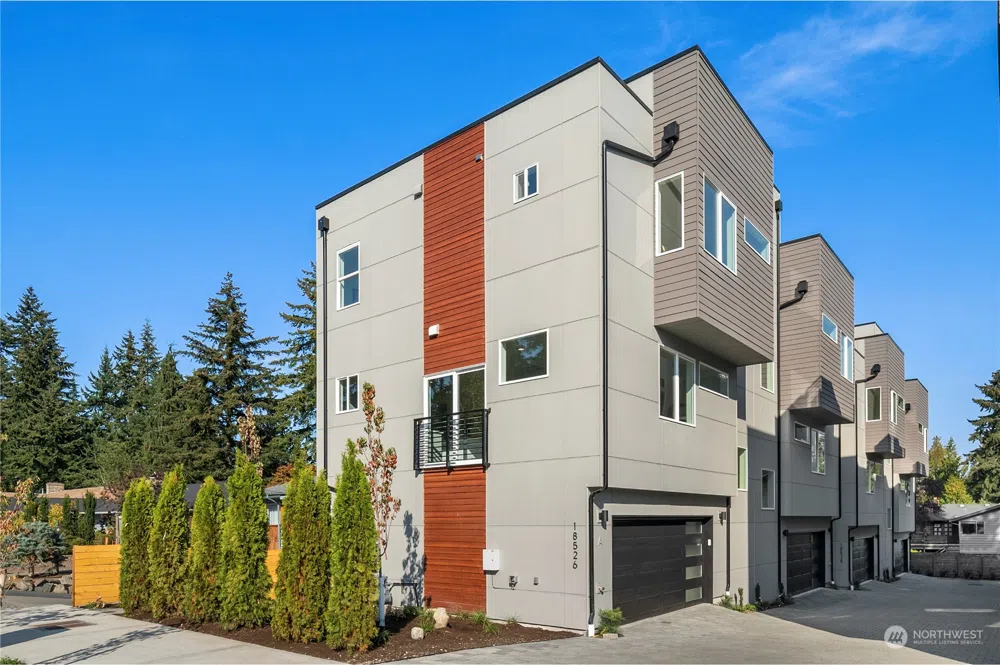 Eco-friendly townhome! Boasts an open layout, 9-foot ceilings, fire sprinklers, ample windows, LVP flooring, smart Ring doorbell, dual-car garage with programmable keypad, on-demand tankless water heater, and a (96%) high-efficiency furnace. Kitchen features quartz countertops, stainless steel appliances, gas stove range, soft-close cabinets, and floating shelves. Upper level includes 3 Bedrooms and 2 Baths, with the Master Suite offering a spacious double shower, dual sinks, and extra closets. The 12x19 ft rooftop deck is ideal for unwinding and entertaining. Proximity to shopping, bus lines, upcoming light rail, Costco, Trader Joe’s, and I-5. Less than 10 minutes to beaches, parks, golf, and schools.