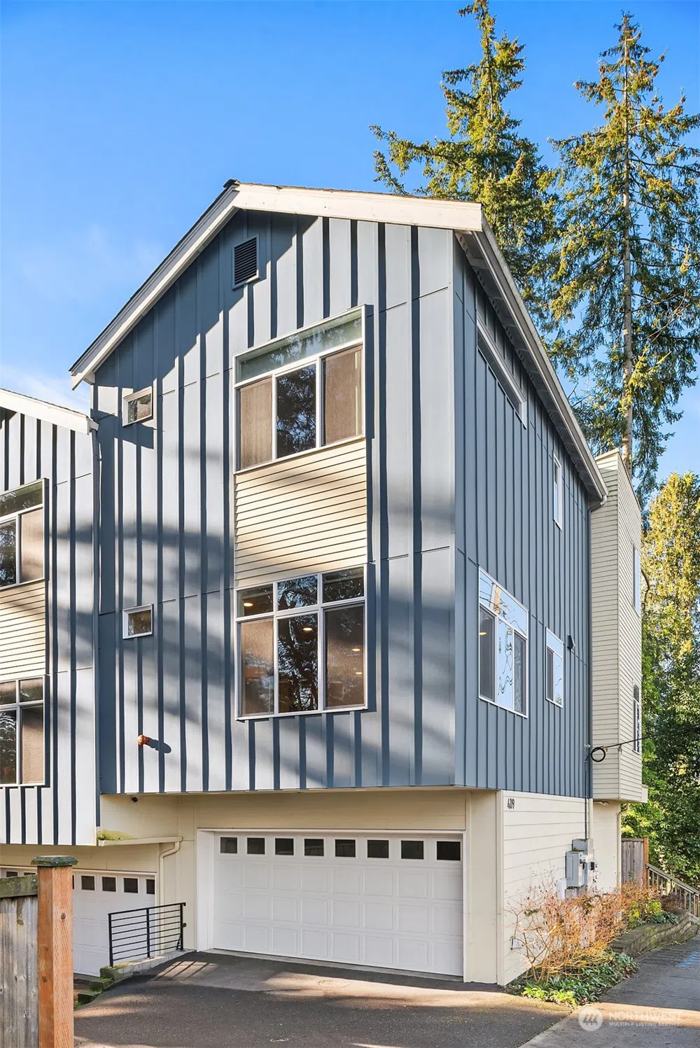 Discover comfort, convenience, & sought after living in this gorgeous Shoreline townhome. Where modern architecture & warm finishes blend in function & style! Wide open living, dining & kitchen are tremendous. Likely the largest you'll see on the market. Superb layout greets you with a TWO car garage equipped for EV, plenty of storage, & an office/flex space! On the main floor enjoy 10' ceilings, great entertaining spaces with kitchen island, tons of natural light, a bedroom & full bath. Gorgeous top-floor primary suite with walk in closet, spa-like shower & private deck. Finished off with a 3rd bd, full bath, & utility room! Easy access to light rail, I-5, Burke Gilman trail/4+ parks within 10min. A/C, guest parking, end unit, and no HOA.